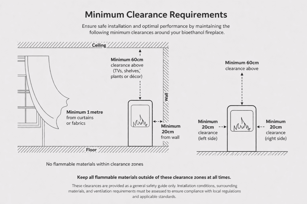 - Minimum 60cm clearance from TVs, artwork, or décor above
